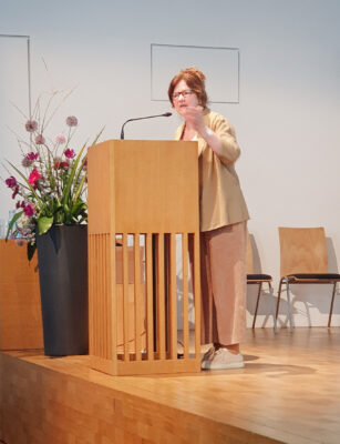 Eine weiteres Highlight war der Beitrag von Ines Krahn (im Foto rechts) vom Netzwerk Selbsthilfefreundlichkeit und Patientenorientierung im Gesundheitswesen kurz „SpiG“. Es entwickelte ein praxisnahes Konzept, das Kooperationen zwischen Selbsthilfegruppen, Kontaktstellen und Gesundheitseinrichtungen strukturiert fördert. Frau Krahn berichtete über „selbsthilfefreundliche Kliniken“ und ähnliche Initiativen, die den Dialog zwischen Kliniken und Selbsthilfegruppen stärken und Patientenorientierung als Qualitätsmerkmal etablieren sollten. Ebenso klärte sie darüber auf, wie medizinische Einrichtungen sich als „Selbsthilfefreundlich“ qualifizieren können
